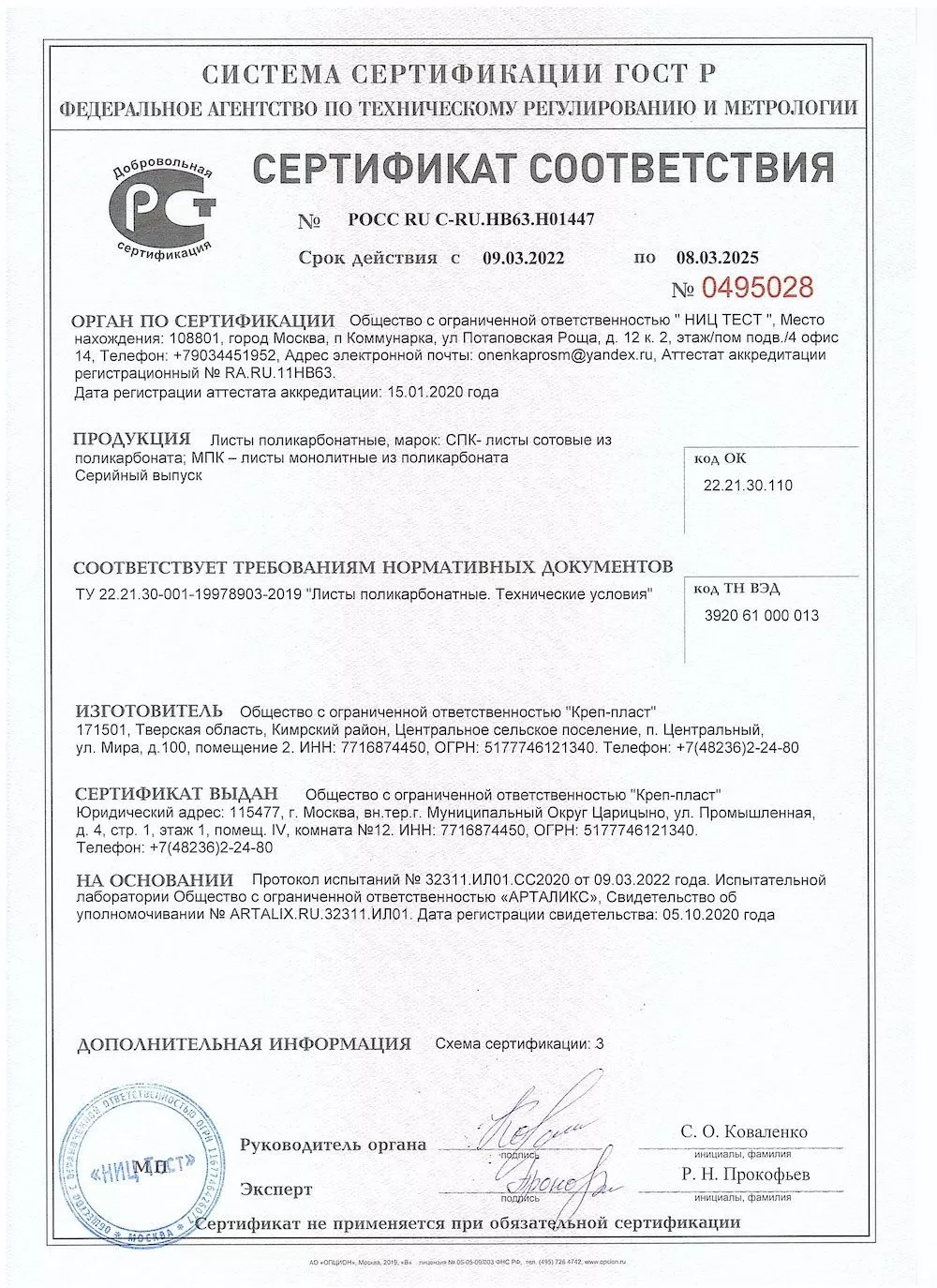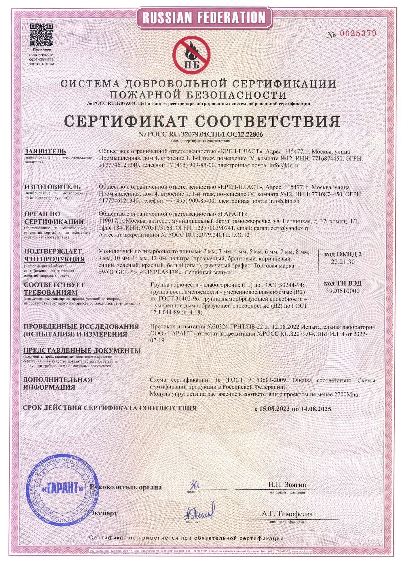 Подтвержденное сертификатами и действующими ГОСТ