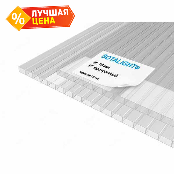 Сотовый поликарбонат 10 мм Соталайт прозрачный 2100х6000 мм