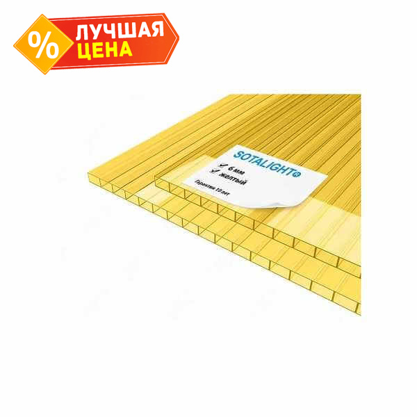 Сотовый поликарбонат 6 мм SOTALIGHT желтый 2100х12000 мм - это прочный и легкий материал, который отлично подходит для использования в различных строительных и дизайнерских проектах. Поликарбонат обладает высокой прочностью и устойчивостью к воздействию внешних факторов, что делает его идеальным выбором для создания крыш, навесов, ограждений и других конструкций.