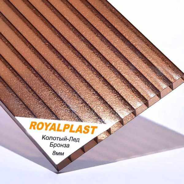 Сотовый поликарбонат 8 мм ROYALPLAST 2-UV колотый лед премиум бронза 2100х12000 мм