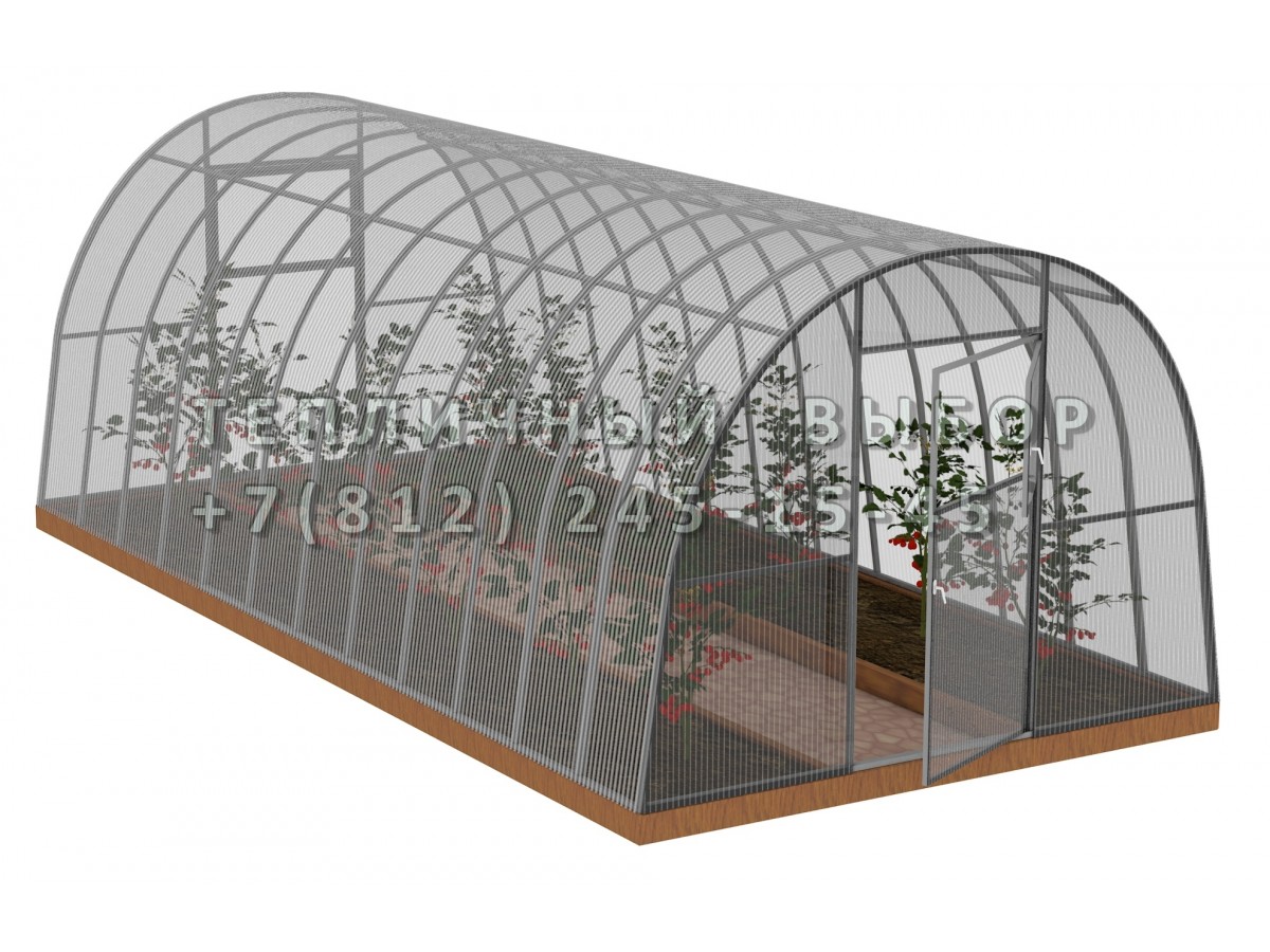 Теплица из поликарбоната Арочная 2,5х12 h=2 м профиль 20х20 мм