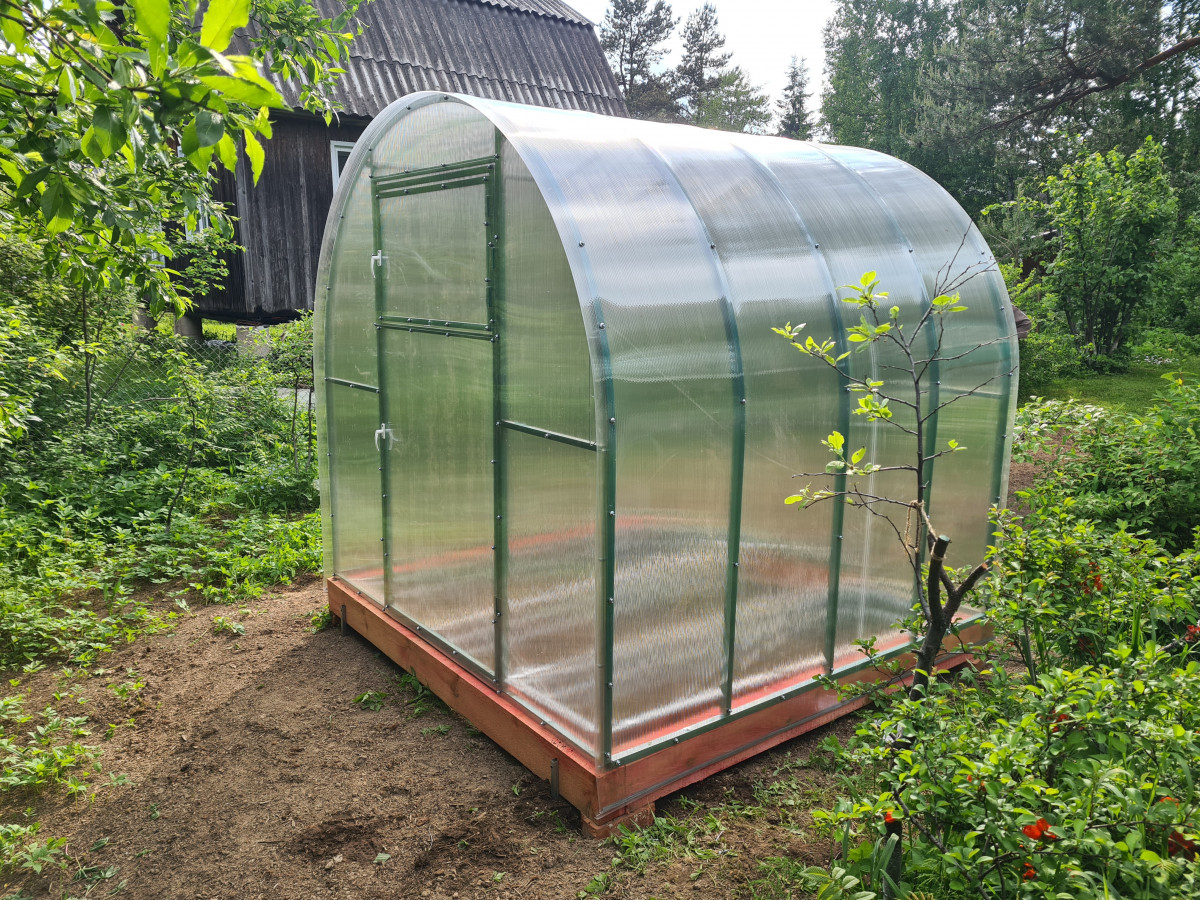 • практически прямые боковые стороны теплицы позволяют использовать пространство по максимуму и выращивать культуры, плотно прилегающие к стенкам