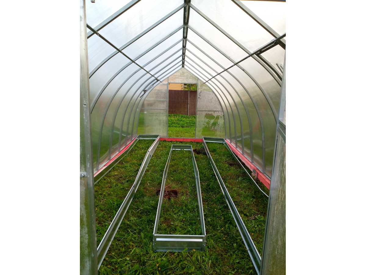 • ширина теплицы позволяет организовать 2 полноценные грядки шириной 72 см и проход между ними
