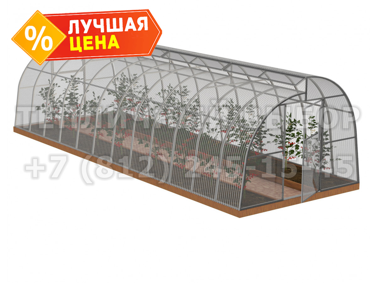 Теплица из поликарбоната Усиленная По Митлайдеру 3х8 h=2.2 м профиль 25х25 мм